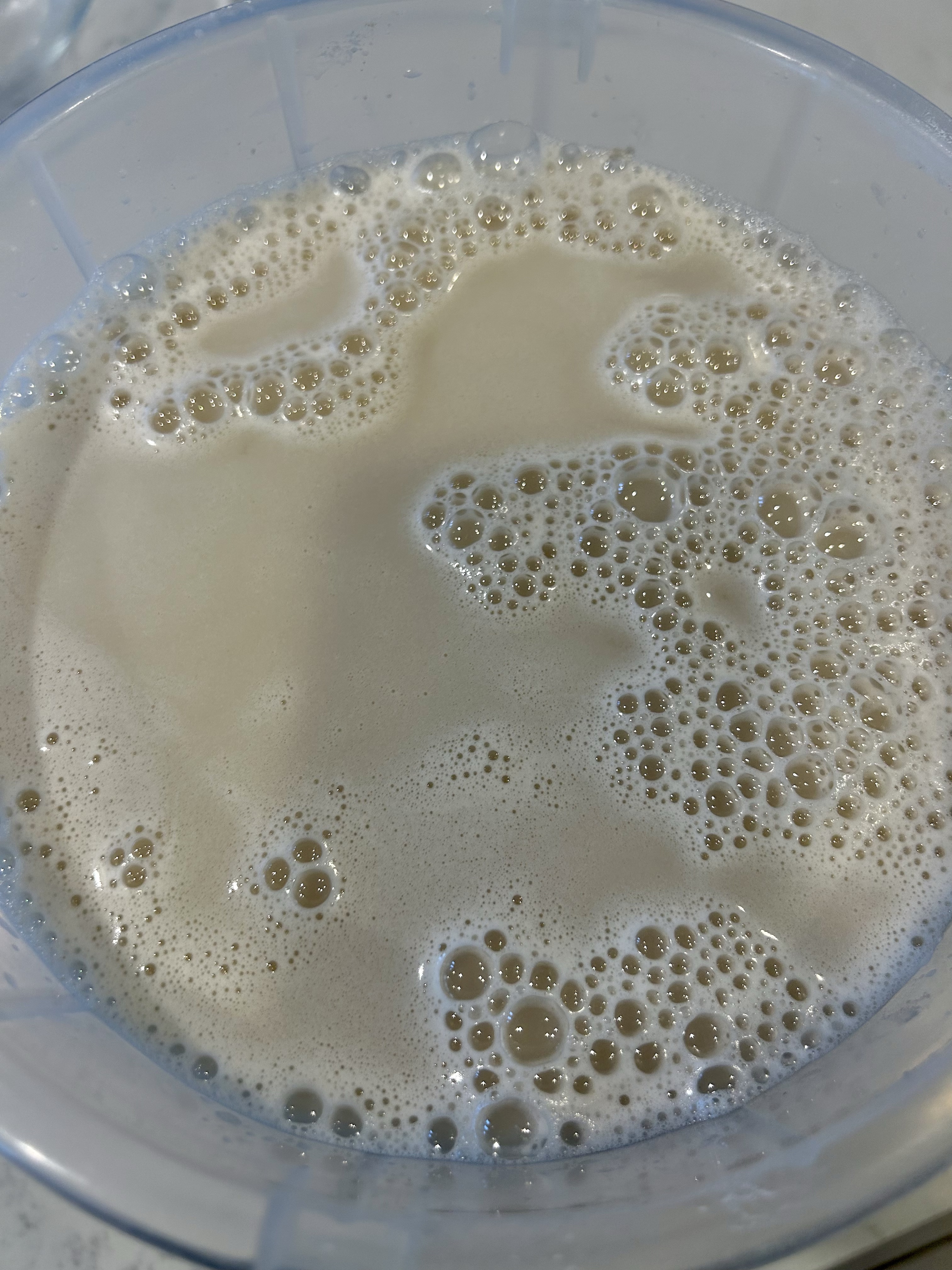- Carefully remove the bubbly top part, discarding the watery portion.