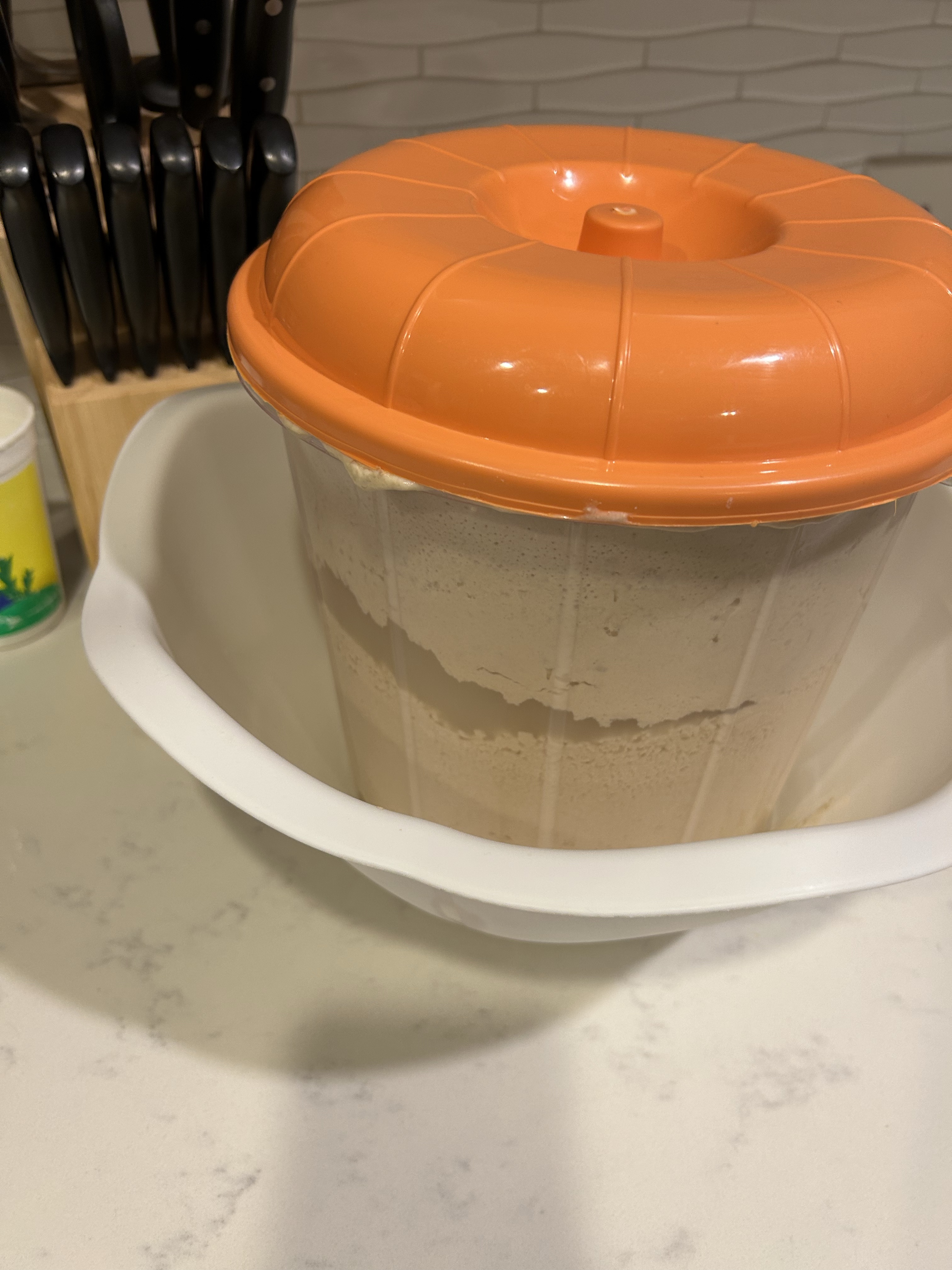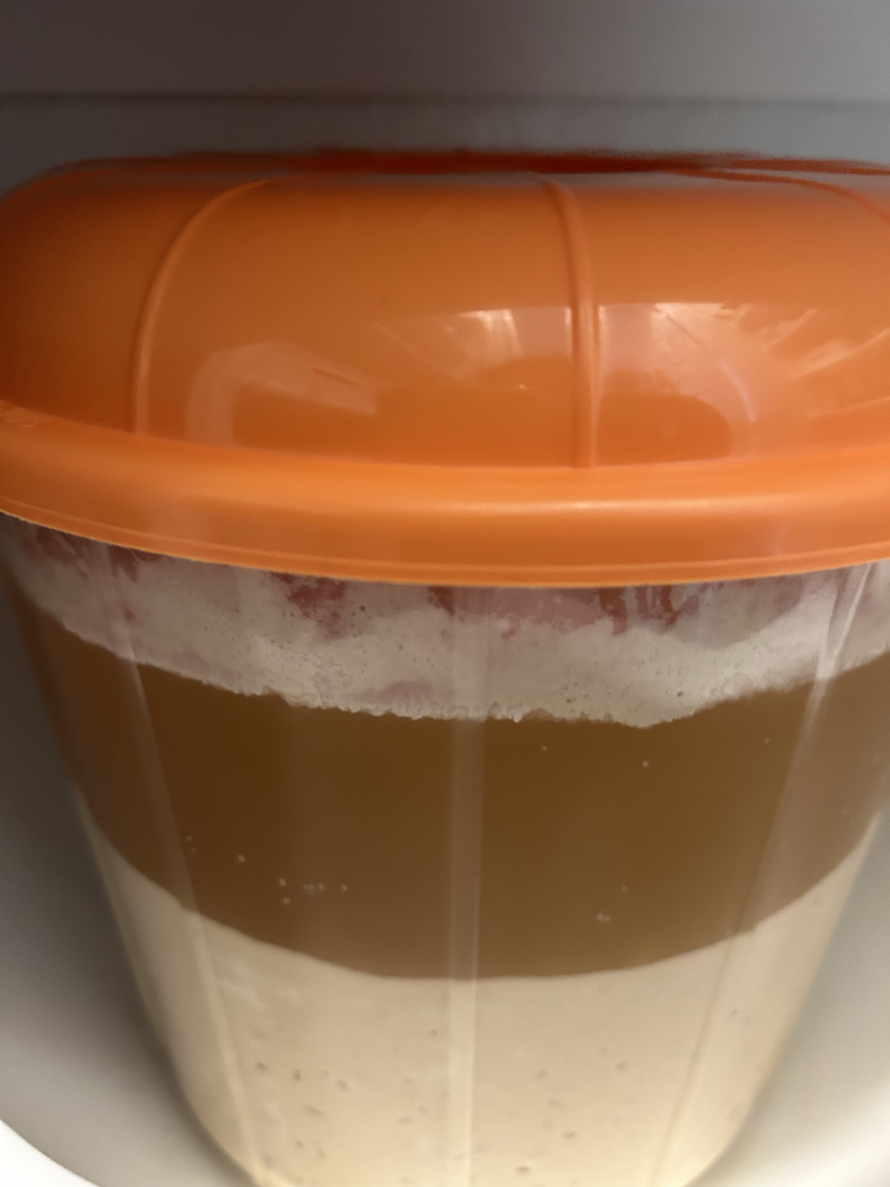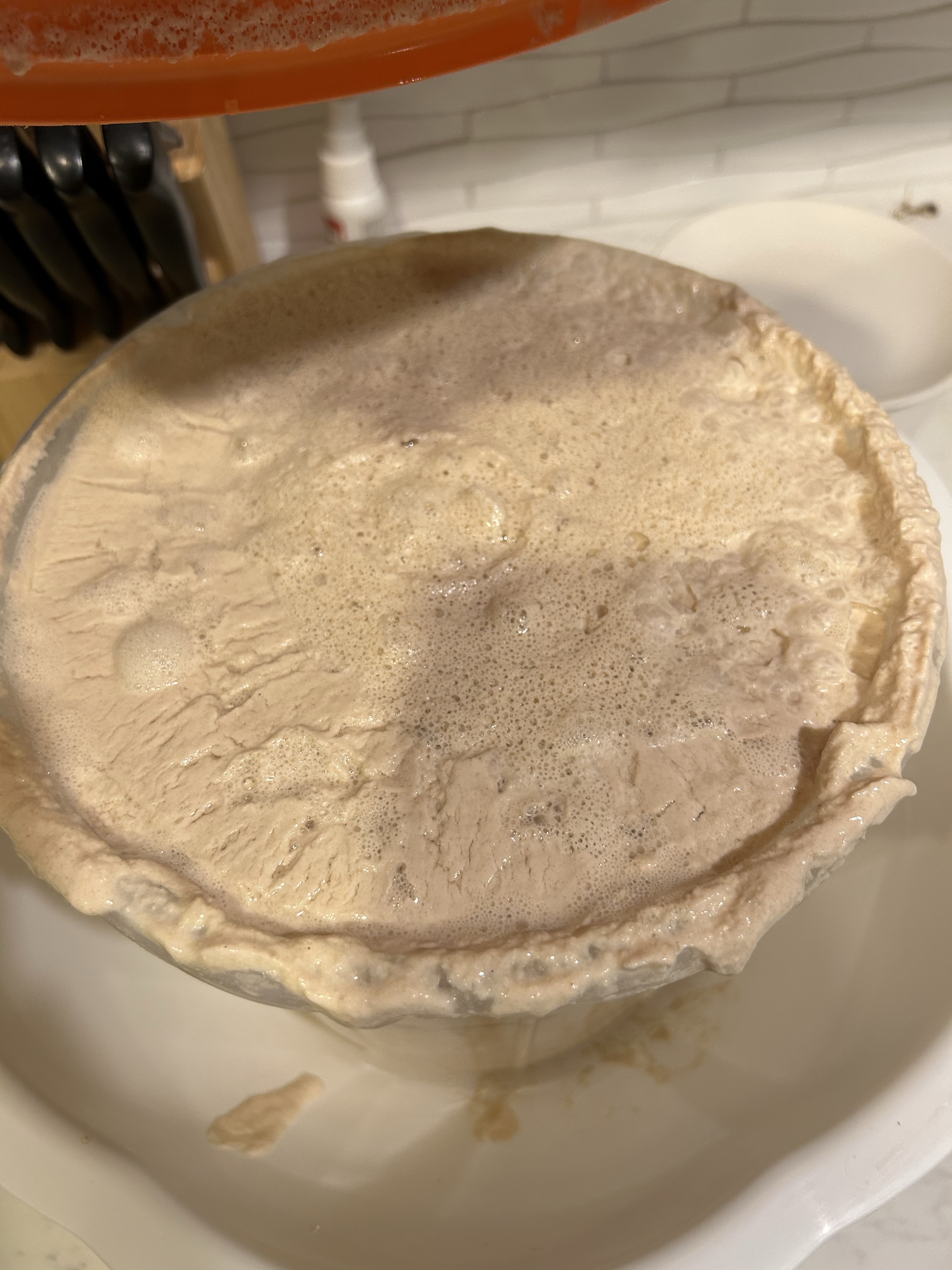 If you decide to proceed with the final stage prior to baking on the third or fifth day, this is how your fermented batter looks like.