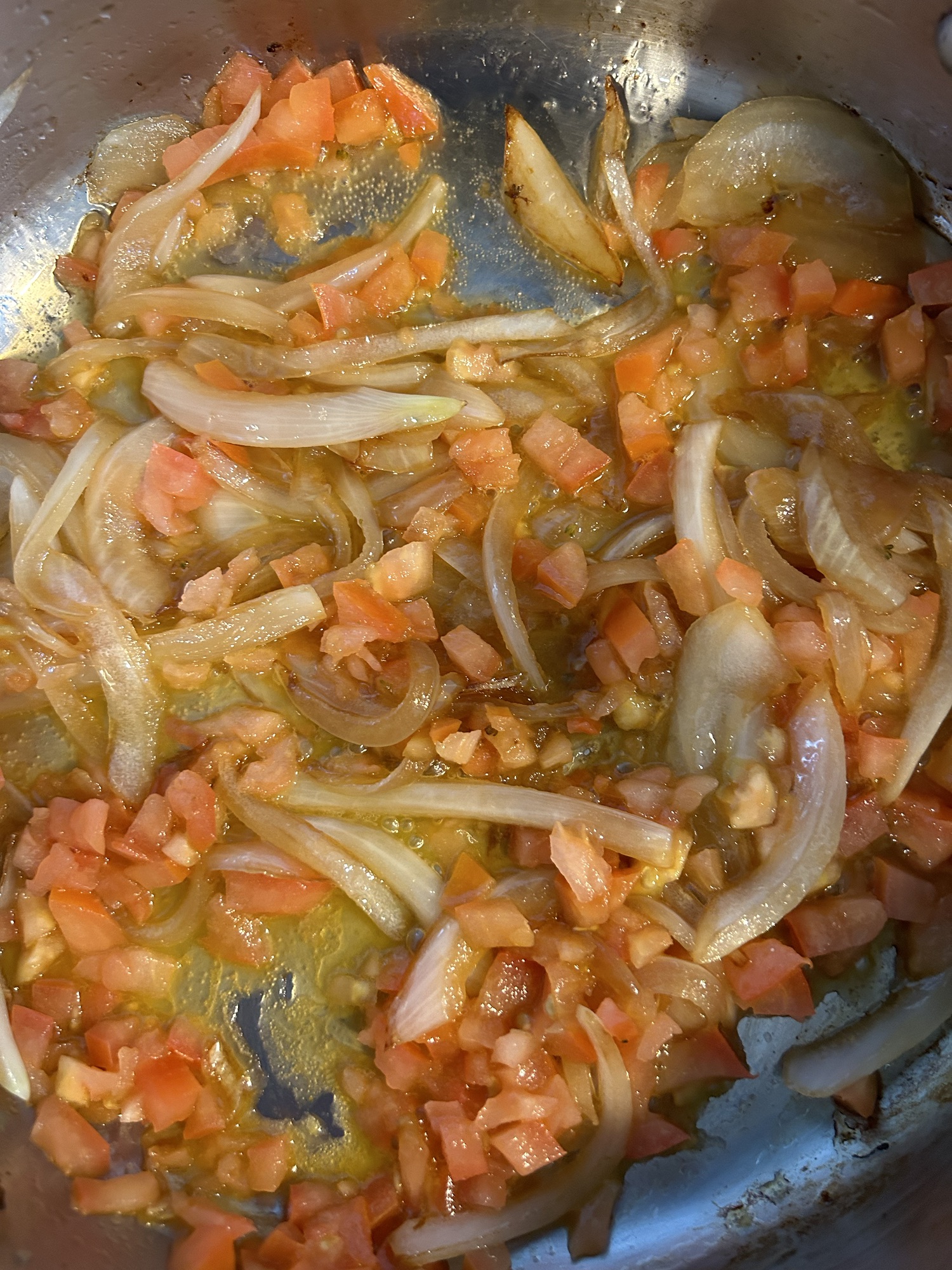 - Add the tomatoes and let the ingredients blend.1 medium ripe tomatoes finely chopped