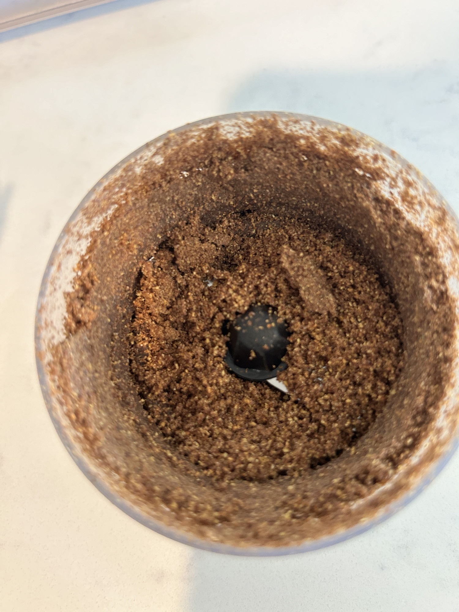 - Grind the Flaxseed: Once cooled, grind the roasted flaxseed in small batches (about ¼ cup at a time) using a coffee grinder. Grind until the seeds transform from an earthy brownish color to a slightly oily brownish texture.